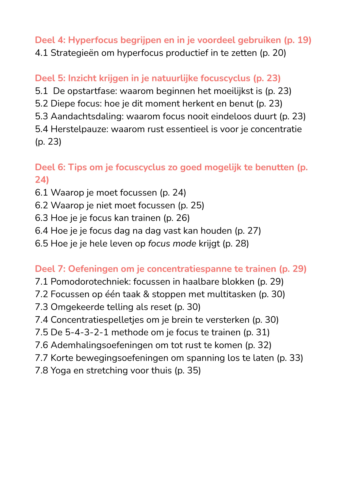 Daarnaast krijg je concrete strategieën, oefeningen, voedingsinzichten en praktische tools om je concentratie stap voor stap te versterken.