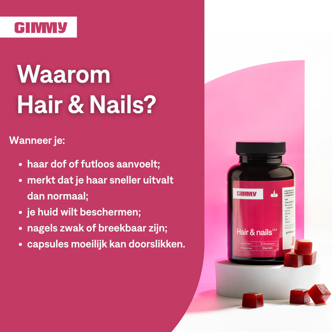GIMMY Hair & Nails, haar en nagel gummies voor volwassenen.